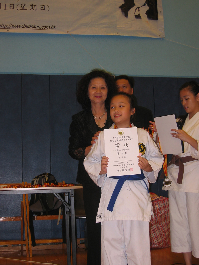 ![]() 右から魯健洪(剛柔流健武館)、陳釣廸(剛柔流柳心館)、Philip Willson(昆明松涛館)、陳華昌(正武館新格門)、(剛柔流柳心会)、馬教練(新格門正武館)、柯智瀧(香港和道流空手道−正空舎 )、陳志強(JKS日韓館)、関雲風(大会会長)、劉仕儀(香港空手道宇心舎)、施緩冬(剛正舎)、梁達銘(I.J.K.A.(香港支部)(金剛舎)) |